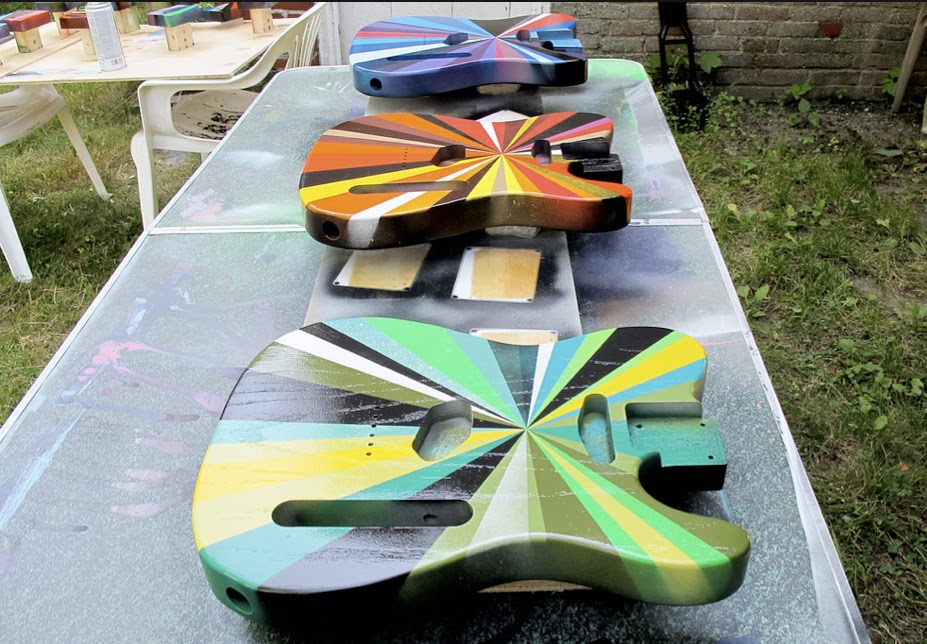 The Rock n' Roll Series is not only music to your ears, but your eyes as well. With bold graphic colors in modern vector-like bursts, the guitars are available completed with Fender standard series necks, Jason Lollar pickups, and vintage style Fender hardware - each hand-painted by Matt.